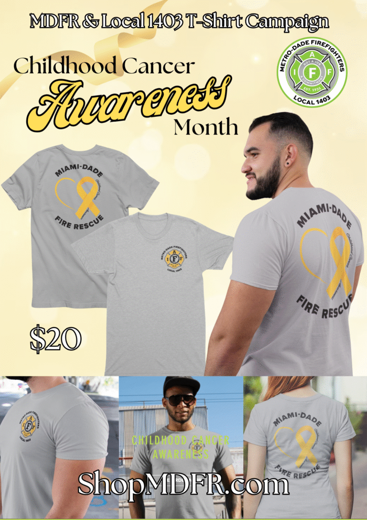 Our Charity T-Shirt Campaigns are powerful, month-long initiatives that unite our firefighters and community in support of important causes including Childhood Cancer, Breast Cancer, Salute to Veterans, and Autism Awareness. Each campaign features custom-designed shirts that raise awareness and show solidarity, worn proudly by Miami-Dade Fire Rescue Firefighters and Dispatchers as part of their uniform throughout the designated awareness month.
