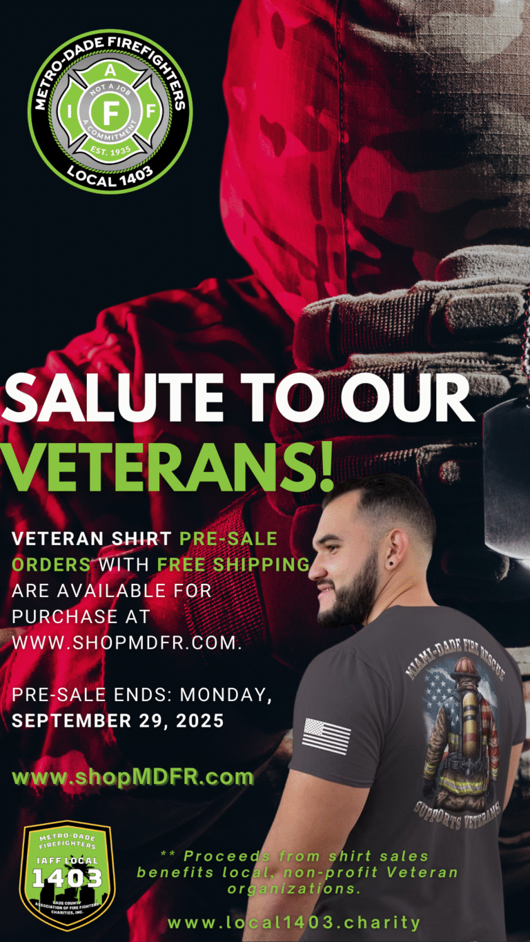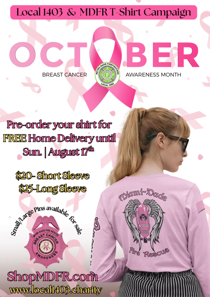 www.shopmdfr.com or by visiting Metro-Dade Firefighters IAFF Local 1403 Union Hall at Fire Tower Miami-8000 NW 21 Street Doral, FL 33122 | Main Line: 305-593-6100